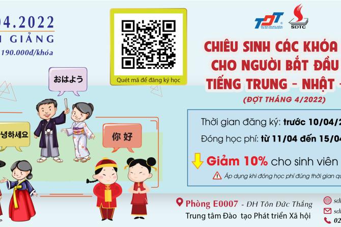 Đăng ký học tiếng Trung - Nhật - Hàn đợt tháng 4/2022