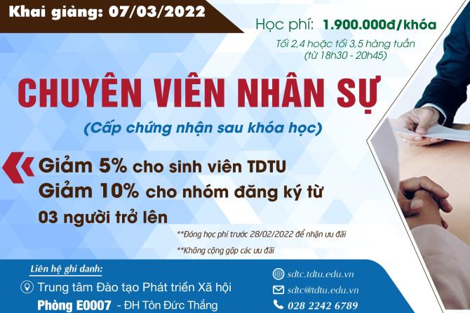 Thông báo chiêu sinh khóa "Chuyên viên nhân sự" tháng 03/2022