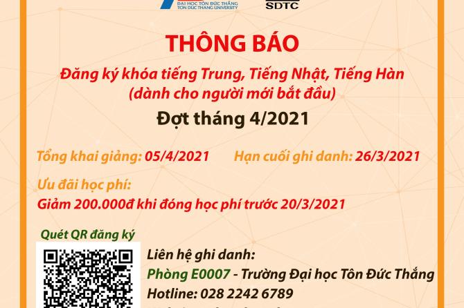 Chiêu sinh khóa tiếng Trung, Nhật, Hàn đợt tháng 4/2021