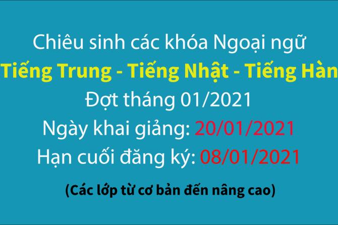 Chiêu sinh khóa tiếng Trung, Nhật, Hàn đợt tháng 01/2021