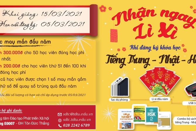Chiêu sinh khóa tiếng Trung, Nhật, Hàn đợt tháng 03/2021