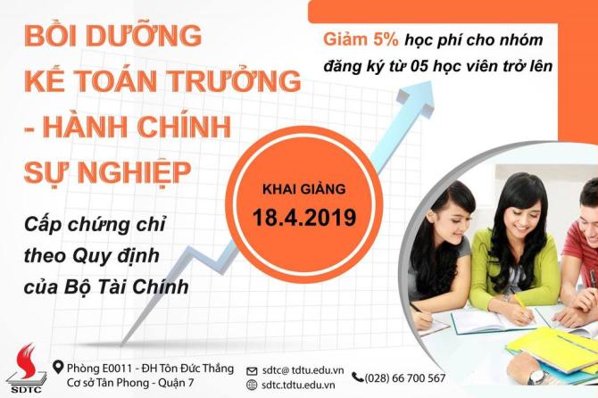 Chiêu sinh khóa bồi dưỡng Kế toán trưởng - Hành chính sự nghiệp tháng 4/2019