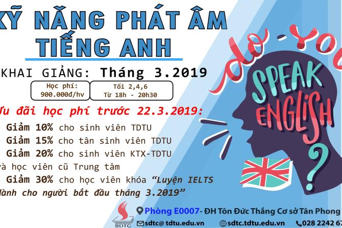 Khóa học kỹ năng phát âm tiếng anh tháng 3/2019