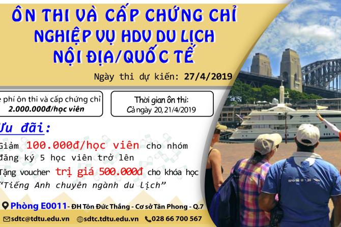Tổ chức Thi và Cấp chứng chỉ Nghiệp vụ Hướng dẫn Du lịch Nội địa/Quốc tế tháng 4/2019