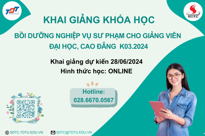 Thông báo: Chiêu sinh khóa học “Bồi dưỡng Nghiệp vụ sư phạm cho giảng viên Đại học, Cao đẳng" - Khóa 04.2024 (Tháng 07/2024)