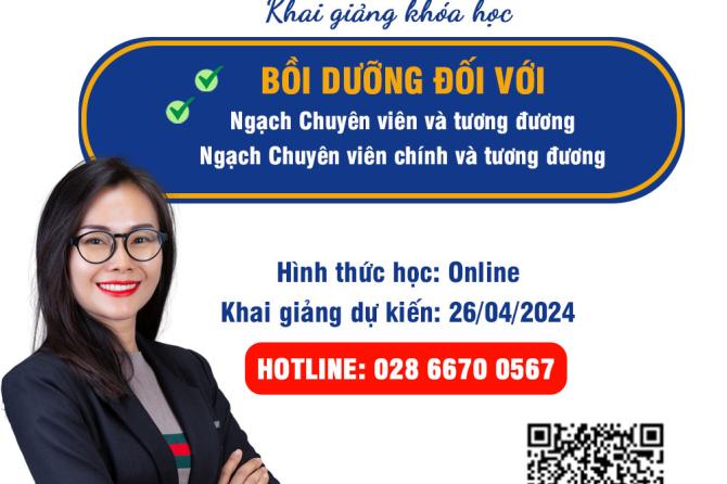 Thông báo chiêu sinh các khóa học “Bồi dưỡng đối với ngạch chuyên viên và tương đương” & “Bồi dưỡng đối với với ngạch chuyên viên chính và tương đương ” – K01.2024