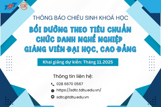 Trung tâm Đào tạo Phát triển Xã hội (SDTC) - Trường Đại học Tôn Đức Thắng chiêu sinh khóa học “Bồi dưỡng Nghiệp vụ sư phạm cho giảng viên đại học, cao đẳng”- Khóa 07.2025  với những nội dung như sau: